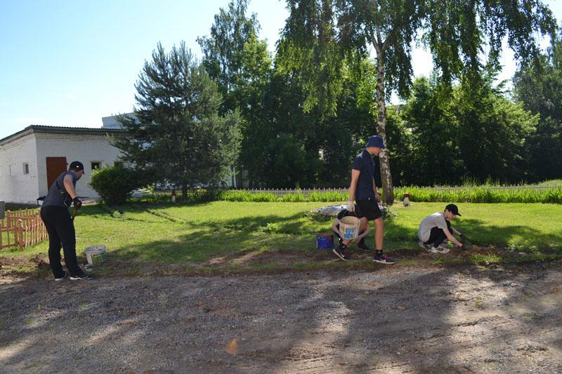 По распорядку дня до обеда учащиеся заняты трудовой деятельностью. Швейная бригада из числа 10 девушек под руководством учителя обслуживающего труда Телепневой М.В. заняты пошивом швейных изделий: наволочек, пододеяльников, простыней, вафельных полотенец. Ремонтная бригада в количестве 11 юношей совместно с учителем трудового обучения Усовым С.С. занимаются сборкой ученической мебели, прополкой клумб, ремонтом книг. Во второй половине дня для воспитанников лагеря организован отдых: конкурсы, викторины, экскурсии, участие в акциях.
