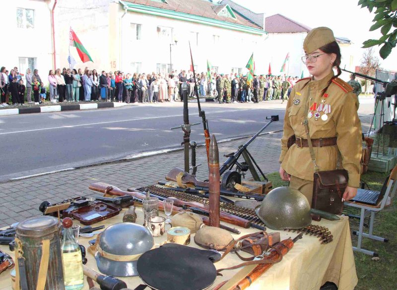 Выставка уникальна тем, что представляли ее воспитанники военно-патриотического клуба «За Родину» Климовичского аграрного колледжа в форме солдат Великой Отечественной войны.
