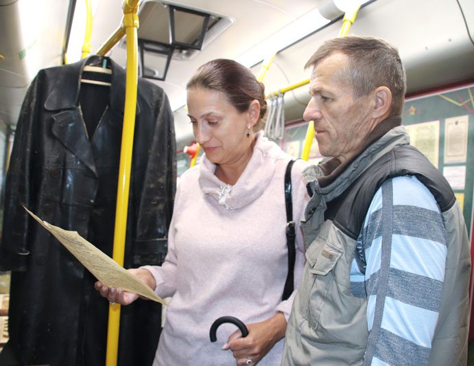 Молодежь Костюковщины с большим интересом побывали в автобусах. Они увидели портреты героев, личные вещи, оружие, обломки лопасти самолета, рации, котелки, фляги, каски и прочие находки времен Великой Отечественной. А также больше десятка стендов, один из которых посвящен геноциду белорусского народа в годы ВОВ.