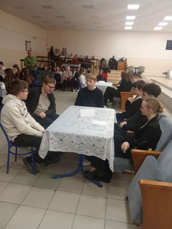 Традиционно игра проходила в настоящем интеллектуальном центре нашего города – МКЦ «Юность», где в течение часа пять лучших команд знатоков из районной гимназии, колледжа и трех городских школ сражались в шести непростых конкурсах: « Факт либо фейк», «Где логика», «Женское лицо войны», «Ты узнаешь ее из 1000», «МЕДИАраунд» и «Блиц». Задания были непростыми. Так, в одном из конкурсов надо было узнать 10 знаменитых белорусок по… силуэту!? А смогли бы угадать город по бутылке кваса и кроссовкам? Там еще и замковая башня была… Конечно, Лида! Много было музыкальных и исторических вопросов.