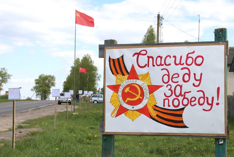В деревне Смольки в День Победы местные жители отдали дань памяти землякам, соорудив аллею из табличек с именами погибших воинов.