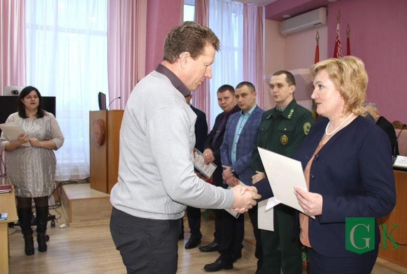 3 января в зале заседаний райисполкома глава района Александра Михеенко в связи с профессиональными праздниками вручила Почетные грамоты райисполкома лучшим специалистам банковской и финансовой сферы и работникам соцзащиты.