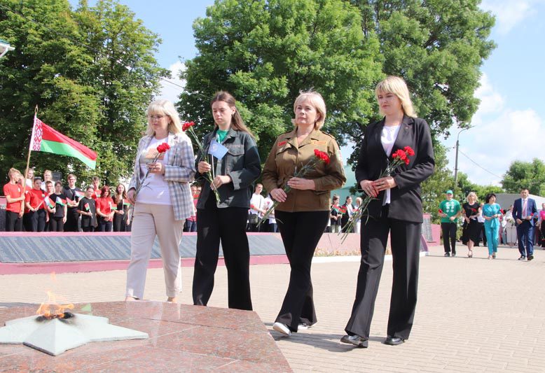 Участие в церемонии приняли бойцы студотрядов, представители принимающих организаций, руководства Костюковичского районного исполнительного комитета, лидеры БРСМ. Командиры студотрядов, представители учреждений образования района и почетные гости возложили цветы к Вечному огню, отдав дань уважения и памяти героическим поступкам наших предков за то, что мы живем, трудимся и строим будущее под мирным небом. И это символично, так как большая повестка третьего трудового семестра посвящена 80-летию освобождения Беларуси от немецко-фашистских захватчиков.