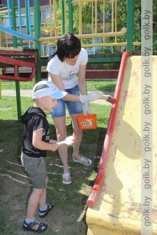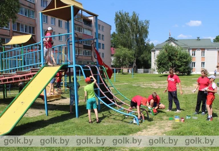 В рамках проекта дети вместе с родителями, а также волонтеры БРСМ благоустраивают детские площадки.