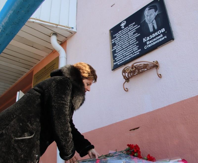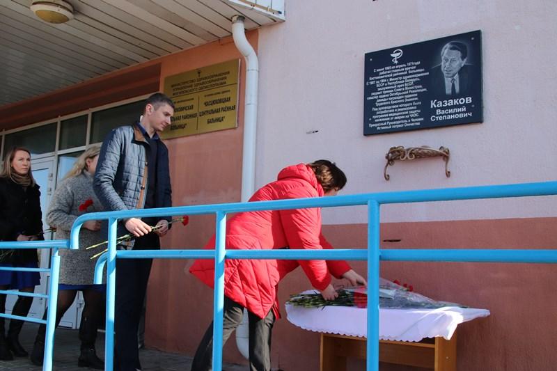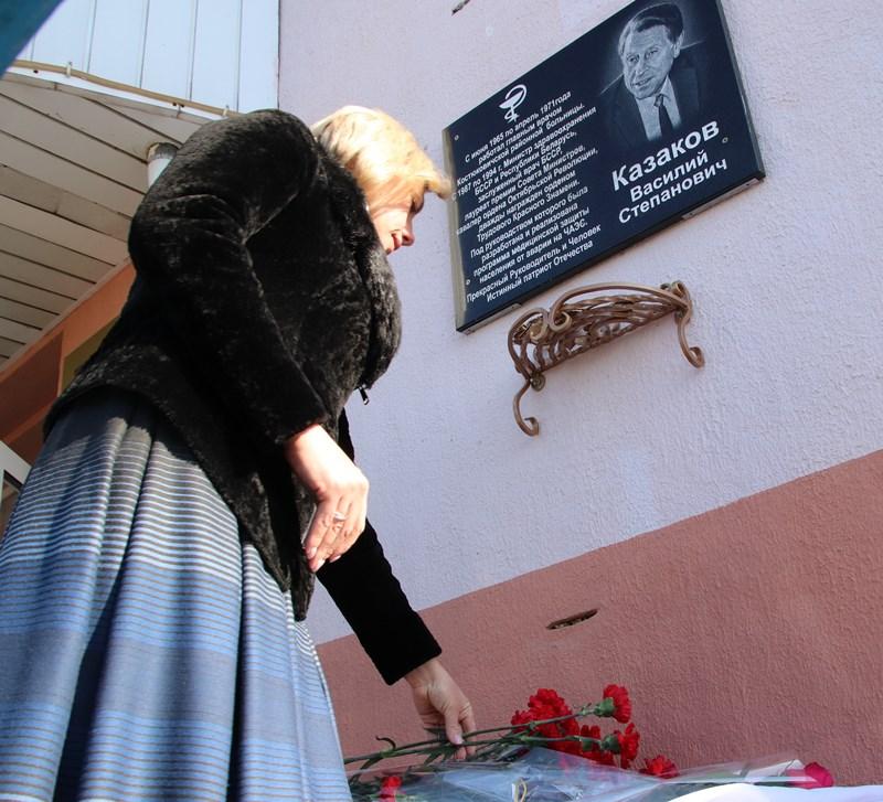 В знак памяти и уважения к Василию Степановичу Казакову к мемориальной доске заслуженного врача возложили цветы.