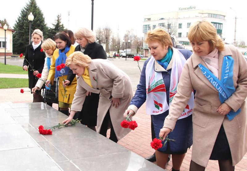 У памятника Ленину собрались глава Костюковичского района Александра Михеенко, представители общественных объединений, организаций и члены Коммунистической партии Беларуси, чтобы отдать честь, возложить цветы и еще раз вспомнить об эпохе, связанной с жизнью великого вождя.