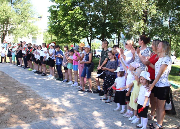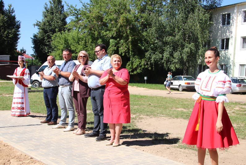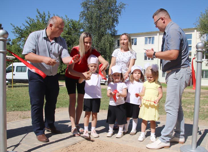 Одновременно торжественным и трогательным получился момент перерезания красной ленточки, в котором вместе с Вячеславом Моксачевым и главным инженером Костюковичского жилкоммунхоза Юрием Прокопенко участвовали самые юные жители города.