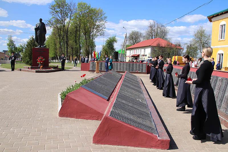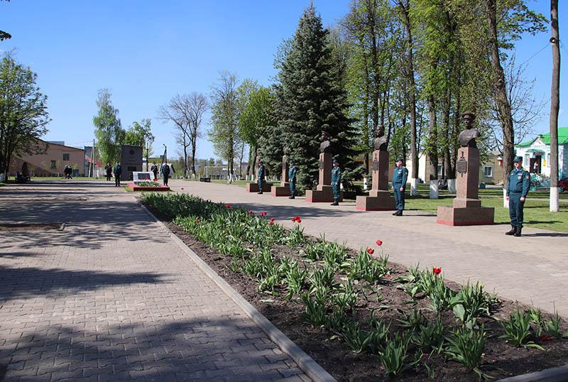 Во время торжественного мероприятия, посвященного 75-летию Победы советского народа в Великой Отечественной войне, в Костюковичах возложили цветы к Мемориалу, Аллее героев и памятнику воинам-интернационалистам.