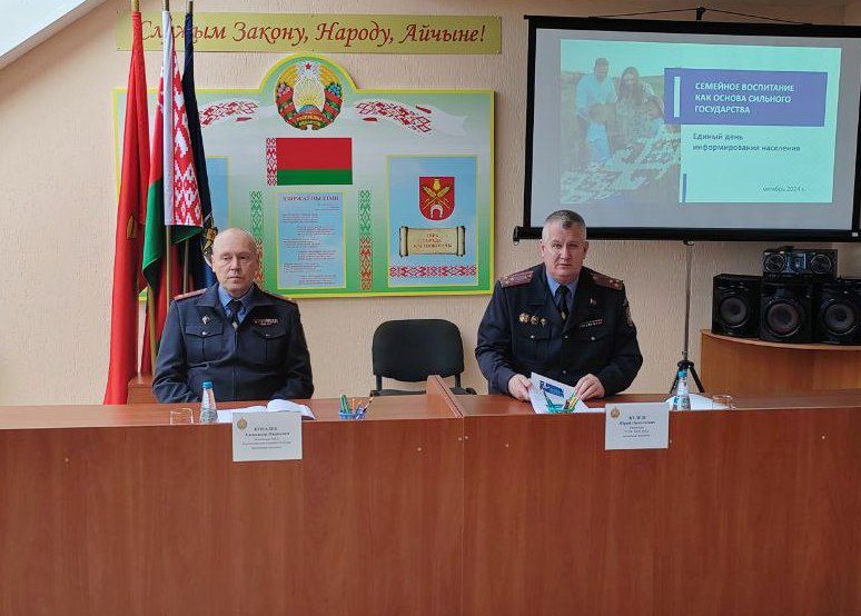 Перед сотрудниками Костюковичского РОВД рамках Единого дня информирования выступил начальник УОДС МОБ МВД Республики Беларусь полковник милиции Юрий Кулеш. В рамках встречи присутствующих информировали о семейном воспитании как основе сильного государства, о деятельности подразделений здравоохранения Министерства внутренних дел в обеспечении социальных гарантий сотрудников органов внутренних дел. Также была доведена информация о состоянии оперативной обстановки в Республике Беларусь в текущем году.