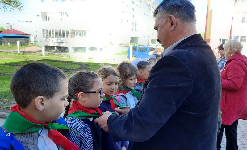 В этот знаменательный день девчонки и мальчишки впервые произнесли слова торжественного обещания, после чего ветераны пионерского движения повязали у них на груди красно-зеленые галстуки.