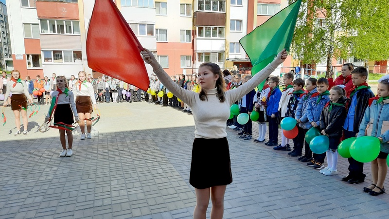 Торжественная линейка «Пионерии – 100 лет!», посвященная Дню пионерской дружбы, прошла 19 мая на открытой площадке средней школы № 4 г. Костюковичи.