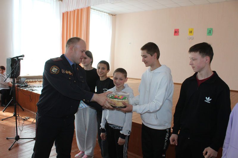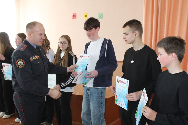 Заместитель начальника межрайонного отдела ГАИ Костюковичского РОВД Юрий Повлюченко поздравил всех ребят с успешным выступлением, поблагодарил участников и организаторов за качественное проведение конкурса и вручил юным инспекторам Дипломы и сладкие призы. Кроме того, Костюковичской районной организацией Красного Креста были вручены наборы для настольного тенниса и футбольные и волейбольные мячи призерам конкурса «Оказание первой помощи пострадавшим».