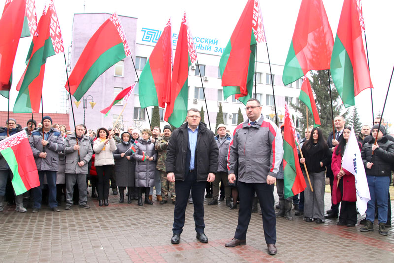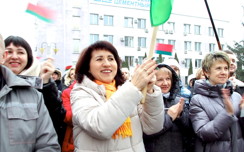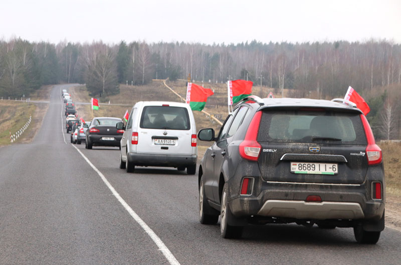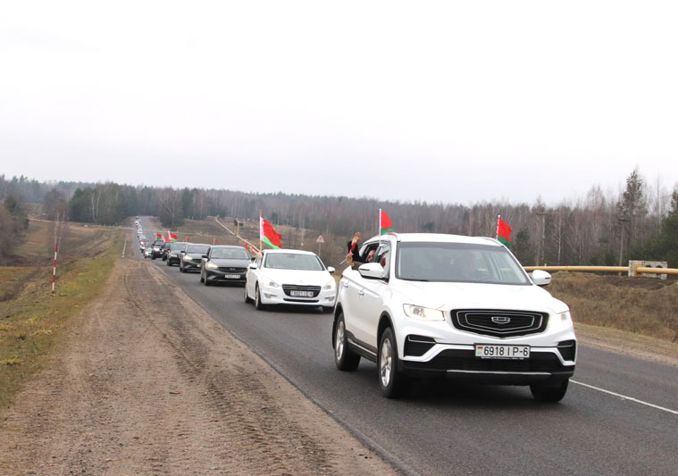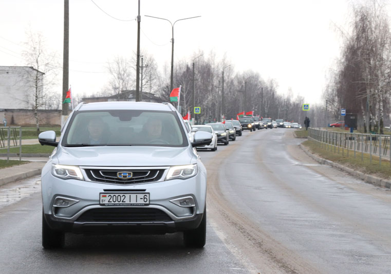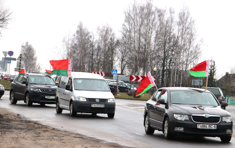 Десятки машин, украшенных национальной символикой, проехали по улицам города, символизируя единство его жителей. Встречали участников пробега на Белорусском цементном заводе.