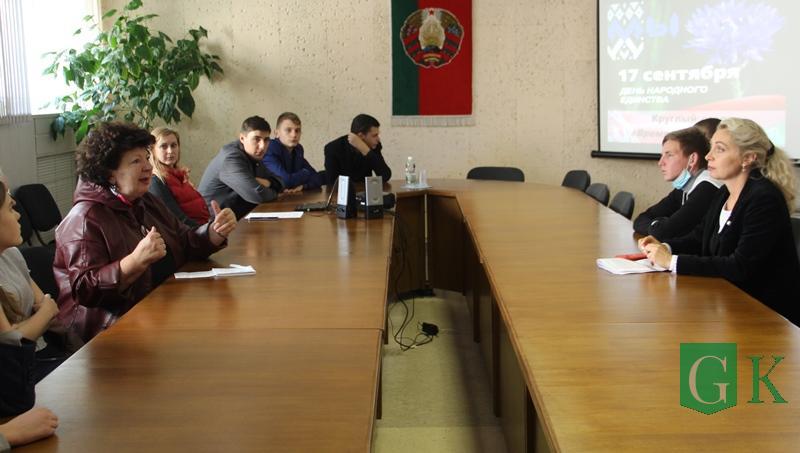 В зале общественно-политического центра состоялся круглый стол «Время выбрало нас» с учащимися учреждений образования города. Спикером выступила председатель общественного объединения районного совета ветеранов Светлана Терехова.