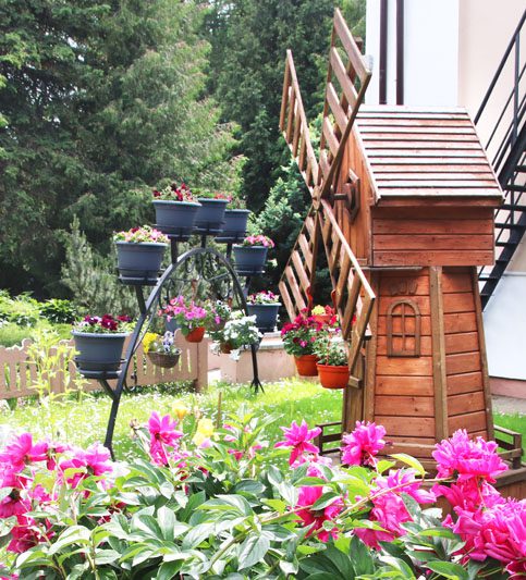 – Каждый год мы что-то здесь обновляем, обязательно красим беседки, скамейки, малые архитектурные формы, высаживаем новые цветы, – рассказывает завхоз и показывает нам на сделанную умелыми руками мельницу. – Вот, к примеру, нашу мельницу можно назвать путешественницей, потому что она побывала на разных районных и областных праздниках «Дожинки», «Купалье» и других. Сделали ее рабочие из нашей строительной бригады. Они на все руки мастера.