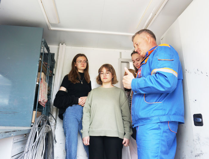 Специалисты РЭС во главе с начальником Сергеем Якушевым провели обзорную экскурсию по административно-бытовым корпусам организации, классу теоретической подготовки, классу Правил дорожного движения, актовому залу после реконструкции. Учащиеся посмотрели бытовые условия, где работники РЭСа переодеваются, отдыхают и принимают пищу. Подростки побывали в ремонтной зоне, в отделе механизации. Интересной частью экскурсии стал полигон, где развернулась тематическая выставка. Детям показали, как работает техника и как выглядит спецодежда монтеров, рассказали, как пользоваться защитными средствами, раздали памятки по электробезопасности и подарили фликеры. Также учащиеся посетили АПУ диспетчерскую, где располагается современная мемо-схема, над которой работал ряд специалистов.