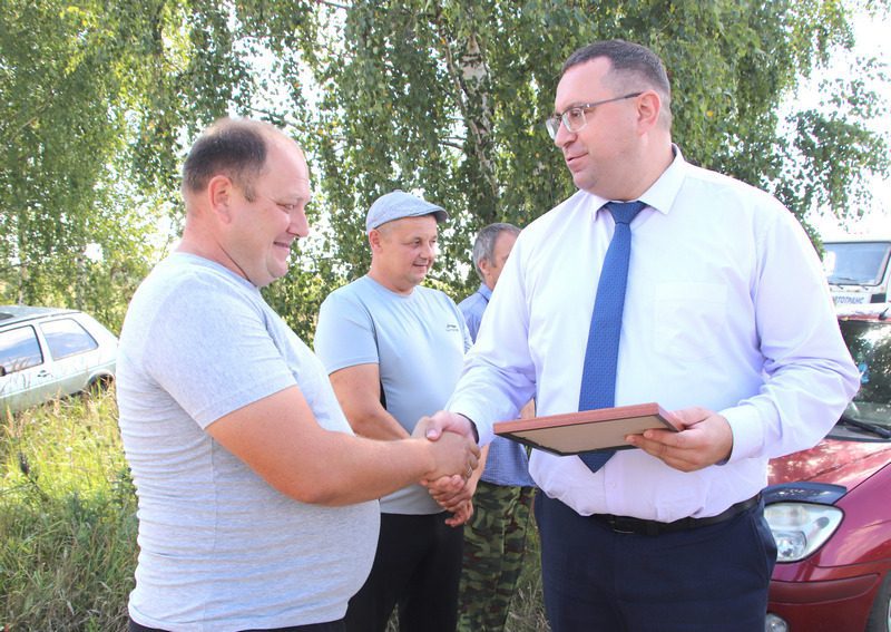 Его коллега Виктор Беляев, который перевез 1000 тонн зерна, также в этот день принимал поздравления и подарки.