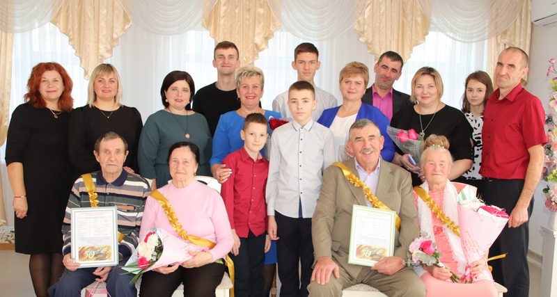 Николай Иванович и Валентина Григорьевна Гапеевы, Владимир Михайлович и Клавдия Степановна Козлловы 17 ноября отпраздновали золотую свадьбу. Кроме детей и внуков, поздравить золотых юбиляров пришли почетные гости – председатель районного исполнительного комитета Александра Михеенко, заместитель Министра юстиции Республики Беларусь Николай Старовойтов, начальник главного управления юстиции Могилевского облисполкома Андрей Столяров, председатель Белорусской республиканской коллегии адвокатов Алексей Шваков, председатель Могилевской областной коллегии адвокатов Евгений Ковалев, председатель Могилевской областной нотариальной палаты Валентина Чайкова и представители местной власти.