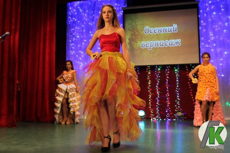 Свою фантазию, изобретательность проявили девушки, демонстрируя наряды, в которых появились на сцене во втором этапе конкурса – дефиле «Осенний вернисаж». Замечу, что каждый наряд был по-своему оригинальным, удивительным и продуманным – под цвет золотой осени, где преобладает желто-оранжевый рисунок.