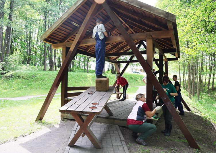 Главный лесничий Костюковичского лесхоза Артем Романенко рассказал, что сейчас очень активно идут работы по благоустройству: до открытия экотропы осталось не так много времени. К работам подключились многие представители трудовых коллективов и учреждений образования. Так, учащиеся гимназии и колледжа, вооружившись кисточками и краской, обновляли внешний вид беседок. Работники лесхоза, Белорусского цементного завода, водоканала, спиртзавода, Белтелекома, тепловых сетей, ПМК-90, ДЭУ-78 наводили порядок в лесу, обрезая сухие деревья и кусты.