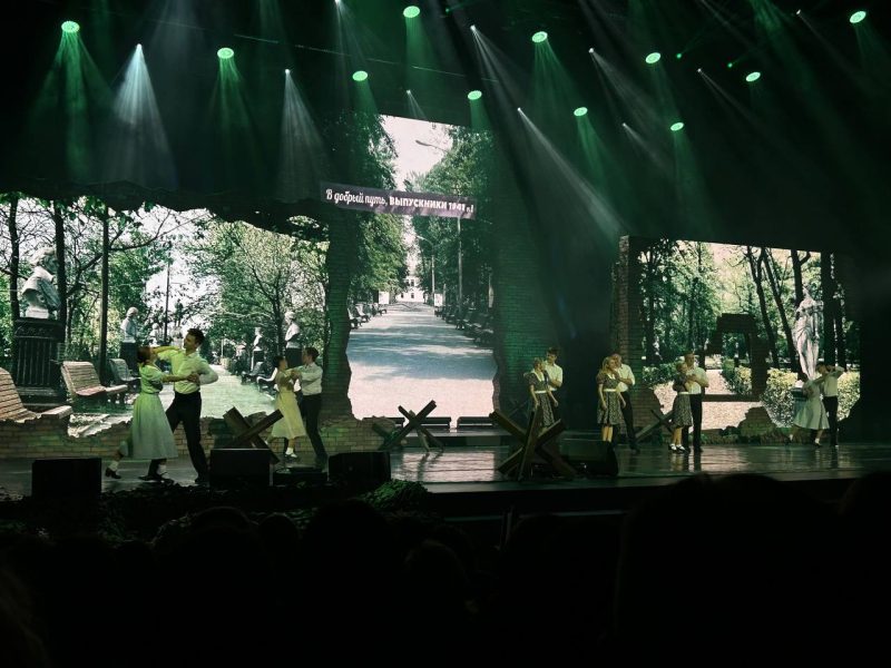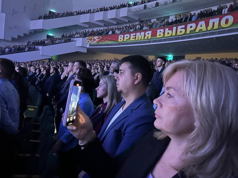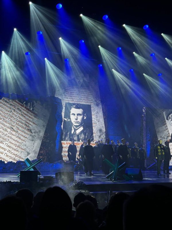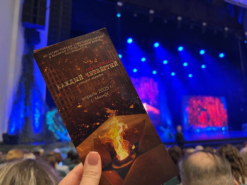 В фойе Дворца Республики развернулись выставки, посвященные памяти жертв Великой Отечественной войны и сохранению исторической правды. Среди зрителей — делегация Костюковичского района и жители Могилевской области. Представители разных поколений — трудовые коллективы, молодежь, ветераны — порядка 2,5 тысячи человек, приехавшие на масштабное патриотическое мероприятие — концерт-реквием «Каждый третий».