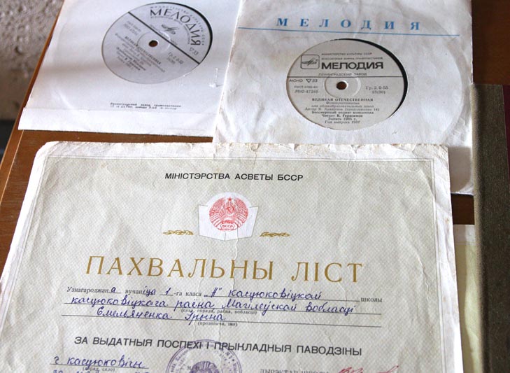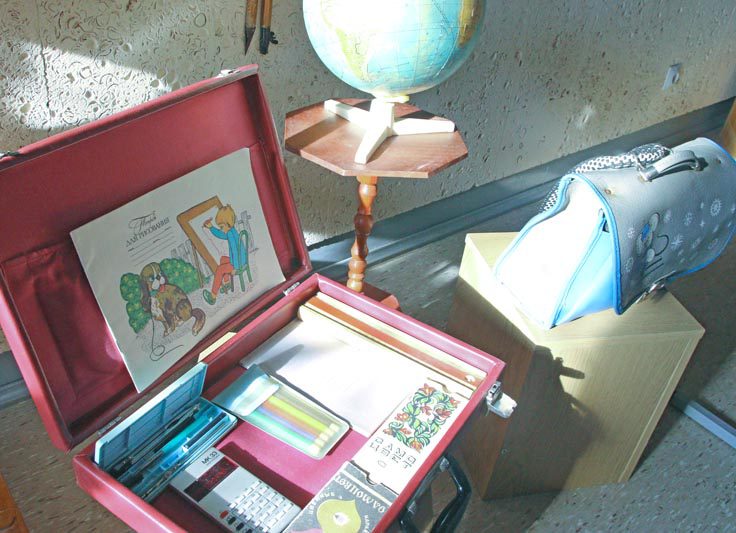 Здесь представлены атрибуты классной комнаты советского времени: доска, тетради, дневник, учебники, книги. Никого не оставят равнодушным черно-белые фотографии, связанные с историей средней школы № 1, которая на выставку любезно предоставила альбомы «Военно-патриотическая игра «Зарница» (1975 год), «Туристический поход «Партизанскими тропами» (1974 год) и «Туристический поход» (1965 год).