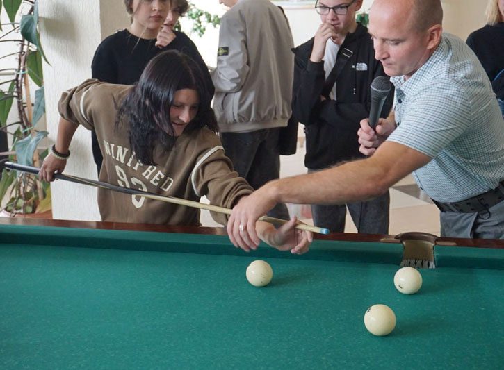 В ходе экскурсии ребята могли попробовать себя в скалолазании (кстати, у многих неплохо получалось!), поработать с силовыми тренажерами, посмотреть, как проходят тренировки по дзюдо и боксу, повисеть на турнике, узнать правила бильярда и многое-многое другое. С первокурсниками на всех этапах работали и знакомили со своими видами спорта опытные педагоги и тренеры.