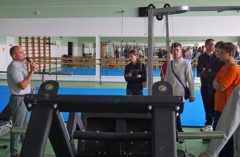 11 сентября Костюковичский ФОЦ «Физкультура и здоровье» пригласил на День открытых дверей 50 первокурсников УО «Костюковичский государственный колледж». Перед началом экскурсии перед молодыми людьми выступили заместитель председателя комиссии по делам несовершеннолетних Костюковичского райисполкома Алексей Жариков и заместитель директора ФОЦ «Физкультура и здоровье» Игорь Новик. Занятия спортом – это престижно, полезно для здоровья и дисциплинирует подростков.