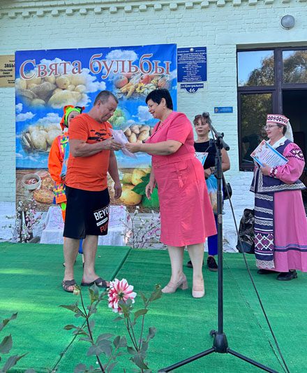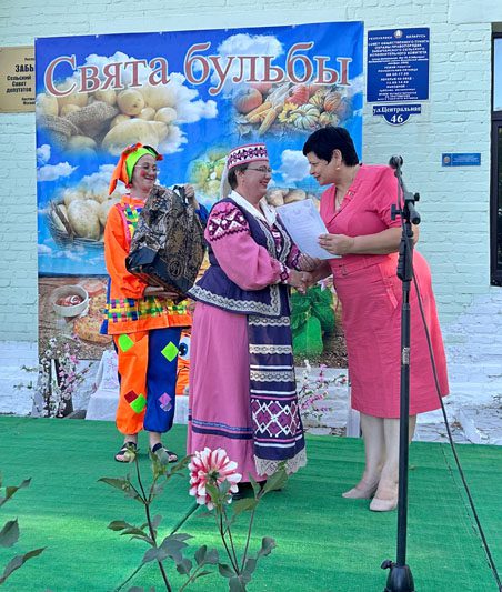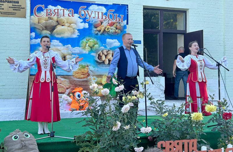 В завершение рабочей недели сельчан собрало вместе театрализованное представление «Бульба, хэй!» с зажигательными выступлениями любительских коллективов районного Центра культуры и сельских Домов культуры. Посетили праздник и почетные гости — председатель районного Совета депутатов Лариса Герасимова, председатель Забычанского сельисполкома Валентина Дадалева и председатель Пролетарского сельисполкома Виталий Стрельцов.
