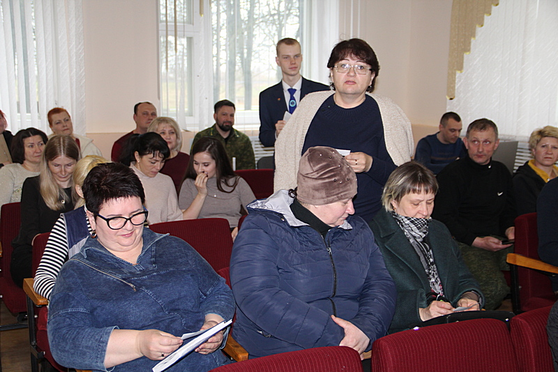 Олеся Сазоненко, заместитель руководителя лесхоза по идеологической работе представила информацию об аспектах развития Костюковичского района за квартальный период и обратила внимания присутствующих, что от личной ответственности каждого человека зависит устойчивое развитие не только костюковщины, но и нашей планеты.