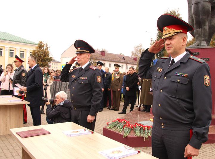 В Костюковичах у мемориального комплекса жертвам Великой Отечественной войны состоялось торжественное принесение клятвы воспитанниками военно-патриотического клуба «Зубр». Знаковое событие с ребятами разделили руководители МВД, представители власти, родные и близкие. Первым поздравил «зубрят» Министр внутренних дел Иван Кубраков.