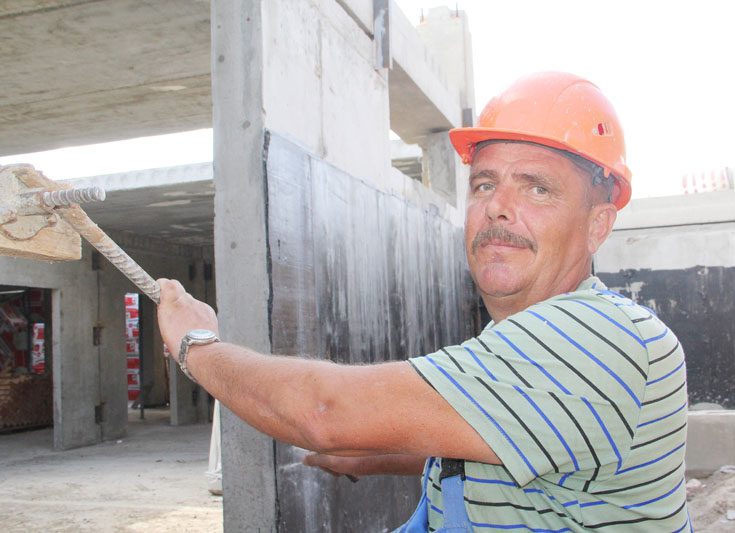 – Сейчас, в основном, ведем монтаж каркаса здания, – рассказал при встрече прораб ГУКДСП «ПМК № 260» Виктор Бурделёв. – Работа очень объемная (глубина заложения фундамента – пять с половиной метров), сложная, напряженная, но интересная. На данном этапе стройки трудится 25 специалистов нашей организации: плотники, бетонщики, каменщики, крановщики и водители. Следующий этап стройки – возведение второго этажа и выше.