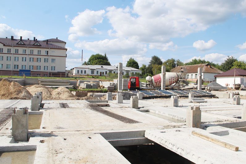 Строительство поликлиники началось в мае текущего года, а его генеральным подрядчиком является ГУКДСП «Костюковичская ПМК № 260». За три месяца сделано уже немало, а в настоящее время специалисты роют котлован, занимаются устройством фундамента, монтажом железобетонных конструкций, заливкой монолитных стен, уплотнением грунта, устройством бетонных полов и другими работами.