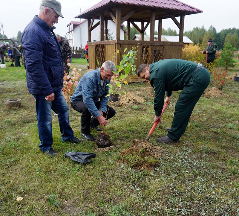 В этот день для ветеранов труда была организована и поездка в Белодубровское лесничество. После небольшой экскурсии по мини-дендопарку, собравшиеся участники высадили более 50 деревьев и кустарников.