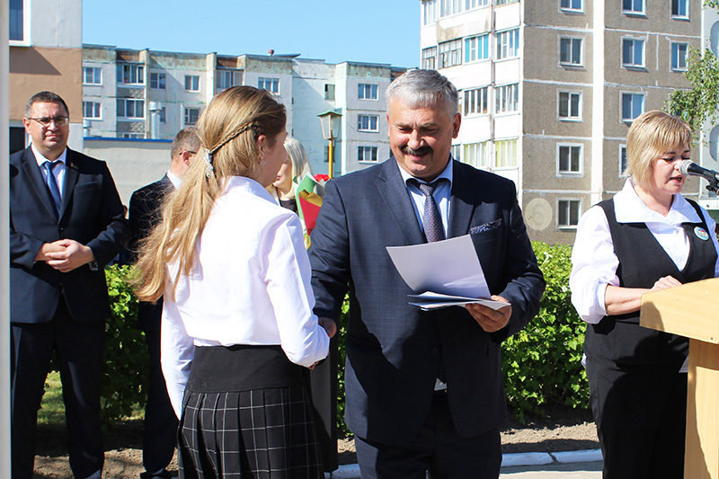 По традиции директор школы Виктор Сидоренко вручил почетные грамоты и дипломы победителям и призерам республиканских и региональных конкурсов и поблагодарил учащихся за достижения, педагогов – за плодотворную работу, а родителей – за тесное сотрудничество. Слова благодарности прозвучали и в адрес руководства Белорусского цементного завода, которое на протяжении многих лет оказывает спонсорскую помощь учреждению образования.