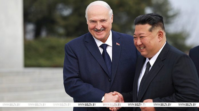 Александр Лукашенко и Ким Чен Ын 26 марта провели в Александр Лукашенко и Ким Чен Ын 26 марта провели в Пхеньяне официальные переговоры, заявив о начале нового этапа в отношениях двух стран. По итогам переговоров подписан договор о дружбе и сотрудничестве между Беларусью и КНДР. Стороны также заключили около десятка соглашений и меморандумов по сотрудничеству в конкретных сферах, включая образование, здравоохранение, сельское хозяйство, культуру, физкультуру и спорт, информационную сферу, взаимодействие по линии БелТПП и МИД.