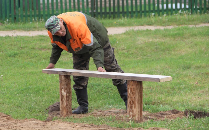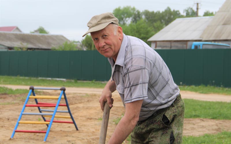 Неделю назад работники Костюковичского жилкоммунхоза на улицу Дружбы Народов привезли песка, поставили детские качели и горки. И вот, казалось бы, на глазах родилась целая игровая площадка для детей. Но как посчитали люди, живущие вблизи нее, этого мало. Так, у инициативных пенсионеров Владимира Сафронова и Степана Миронова созрела идея – собственными руками благоустроить детскую площадку.