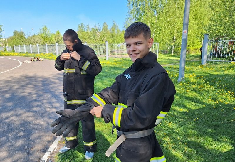 Ну и заключительное испытание боевое развертывание с надеванием на время боевой одежды. Один из самых красочных и увлекательных конкурсов. Юные спасатели выполняли совсем не детский норматив. Надеть боевую одежду спасателя, соединить рукава и ликвидировать условный очаг возгорания.